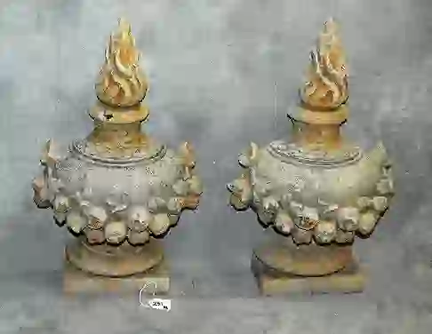 Pair cast stone wall plaques. H:21″ W:13″