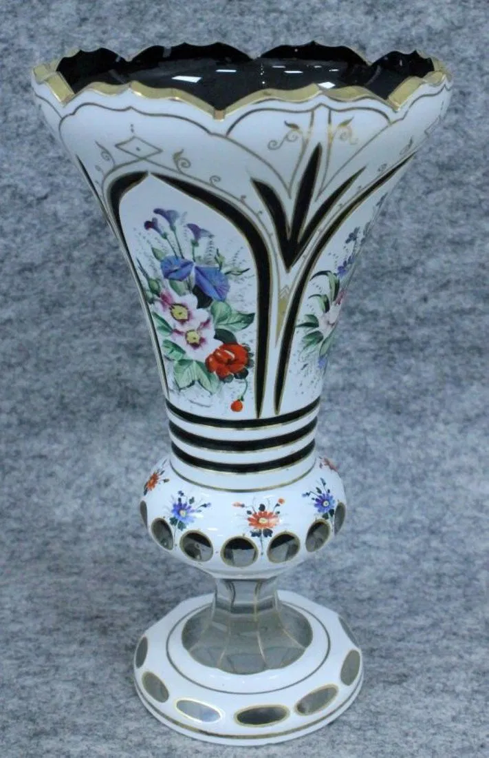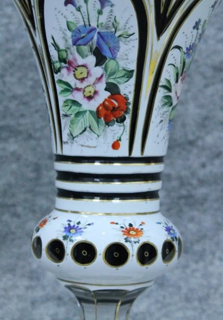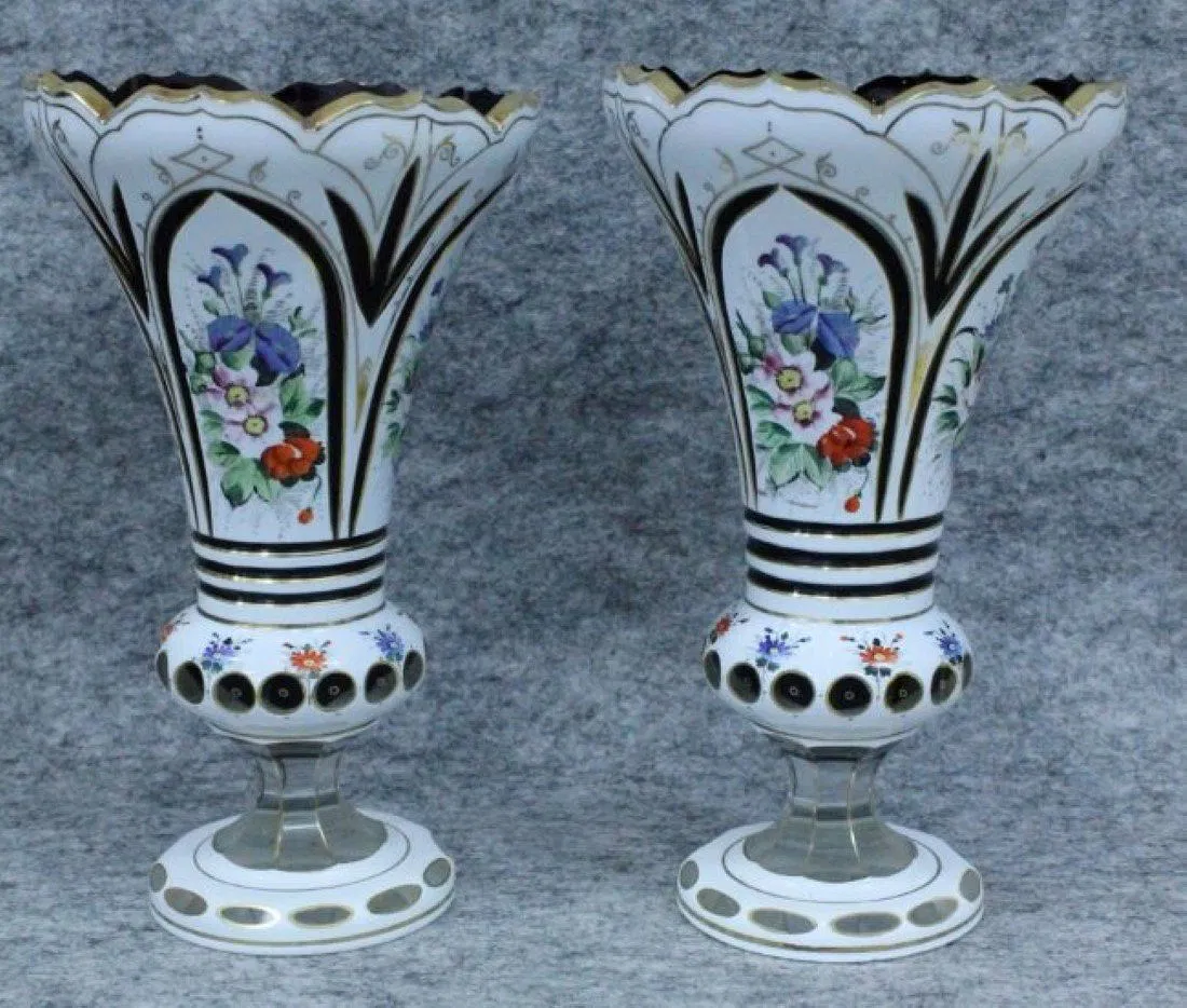 PAIR OF 19TH C. BOHEMIAN OVERLAY VASES. MEASURES H: 9 3/4″