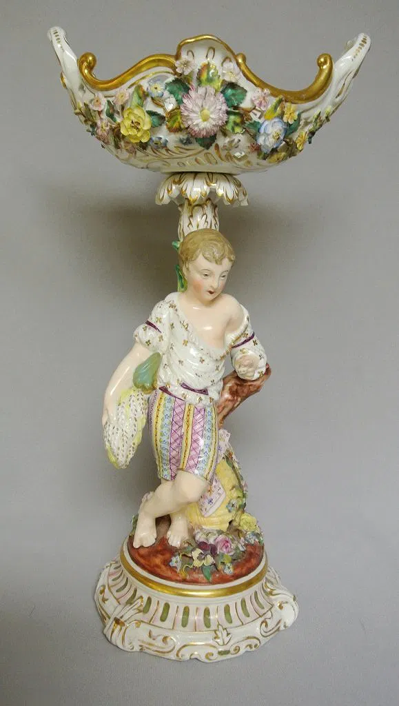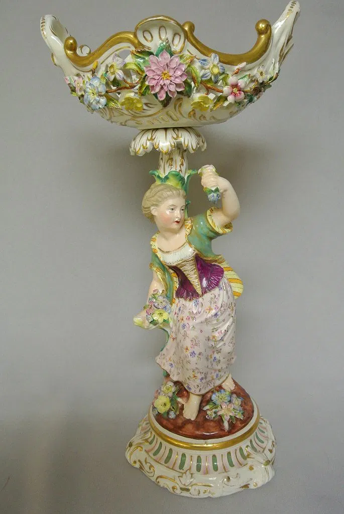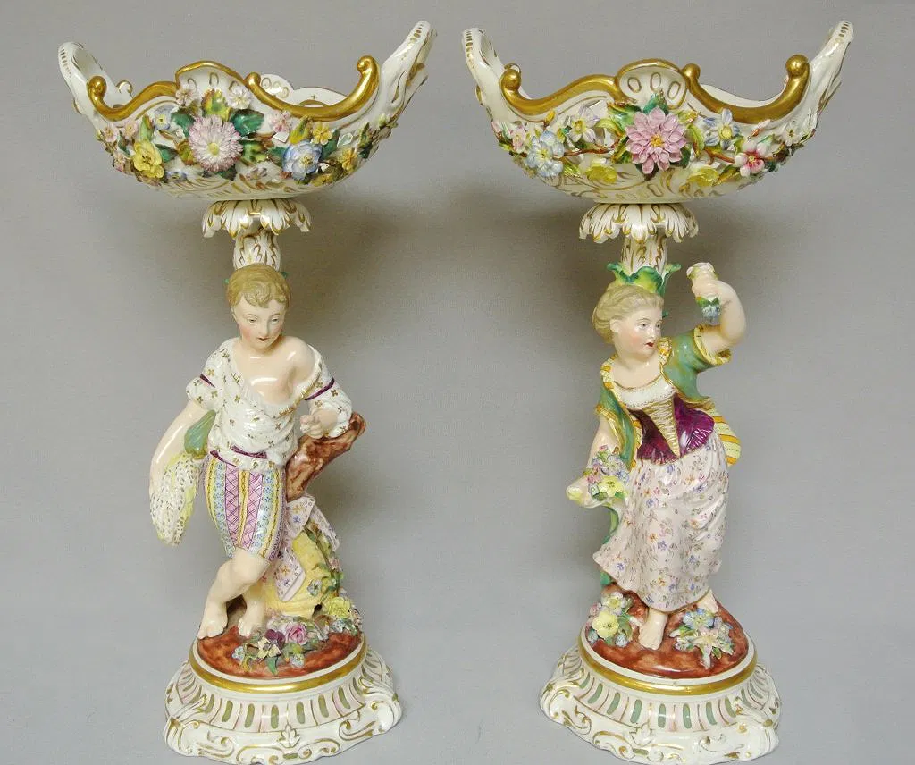 Pair of 19th century German porcelain TAZZAS, with reticulated bowls on top. 38.1 cm h.