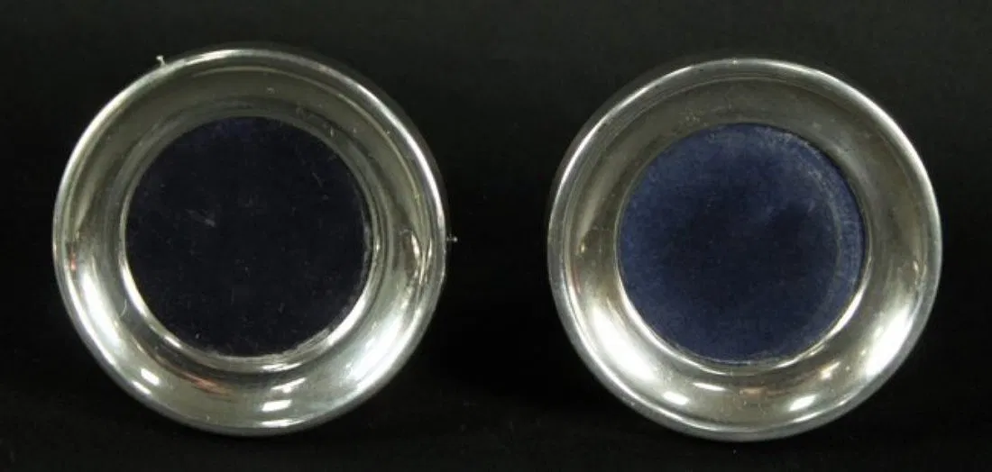 PAIR OF MEXICAN SILVER MINIATURE PHOTO FRAMES. MEASURES 3″ DIAMETER