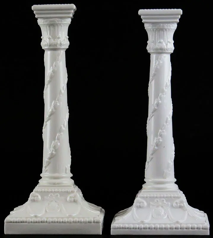 Pair of Royal Worcester England White Porcelain Candle