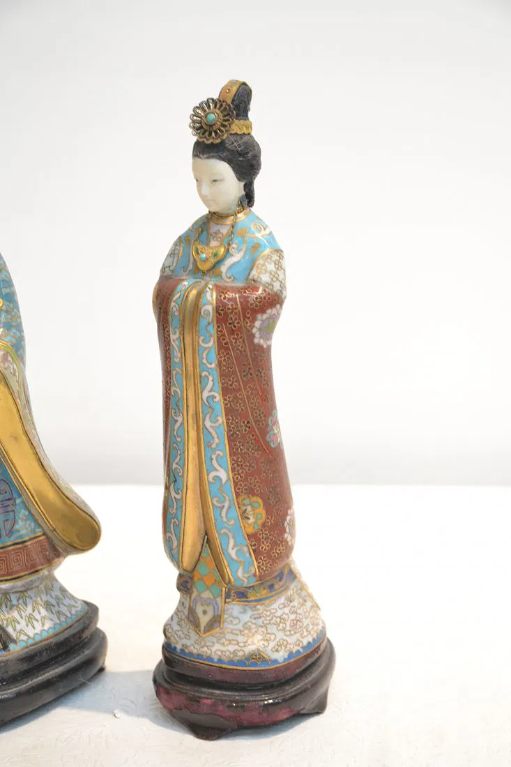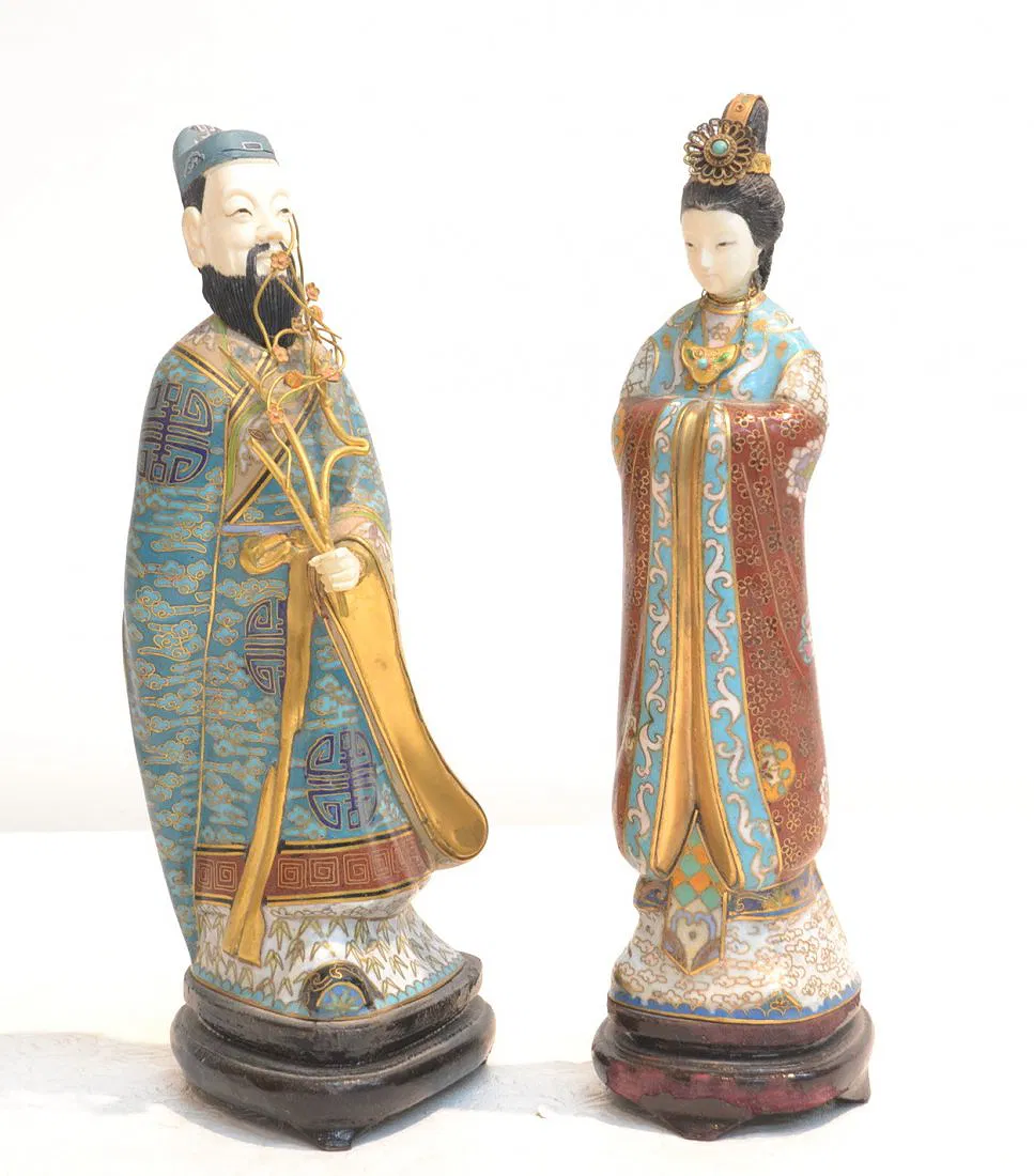 (Pr) CLOISONNE & IVORY FIGURES OF MAN & WOMAN