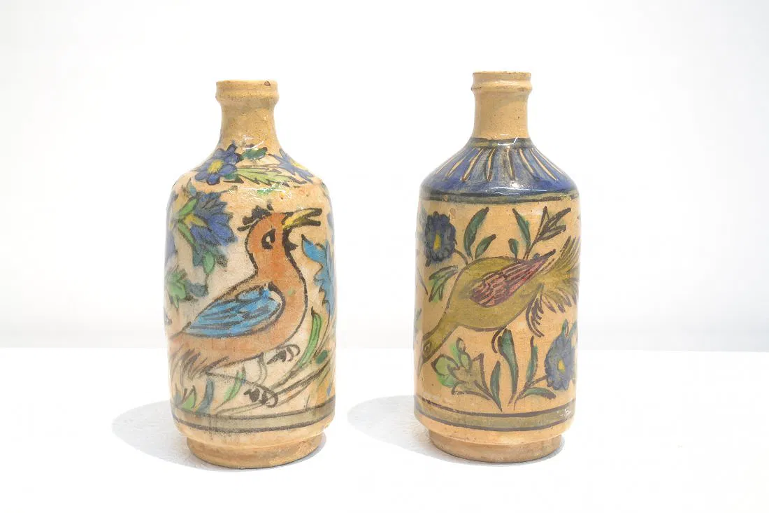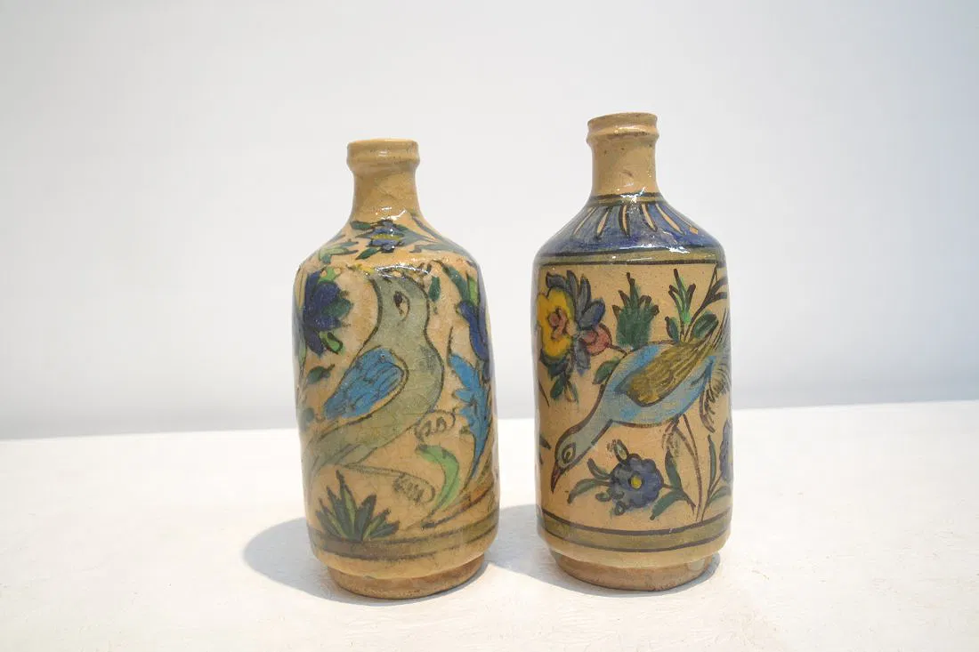 (Pr) STONE WARE BIRD BOTTLES – 8 1/2″ TALL
