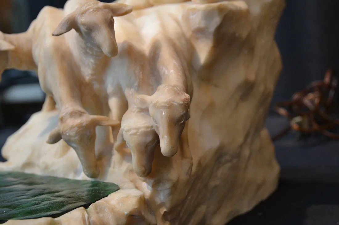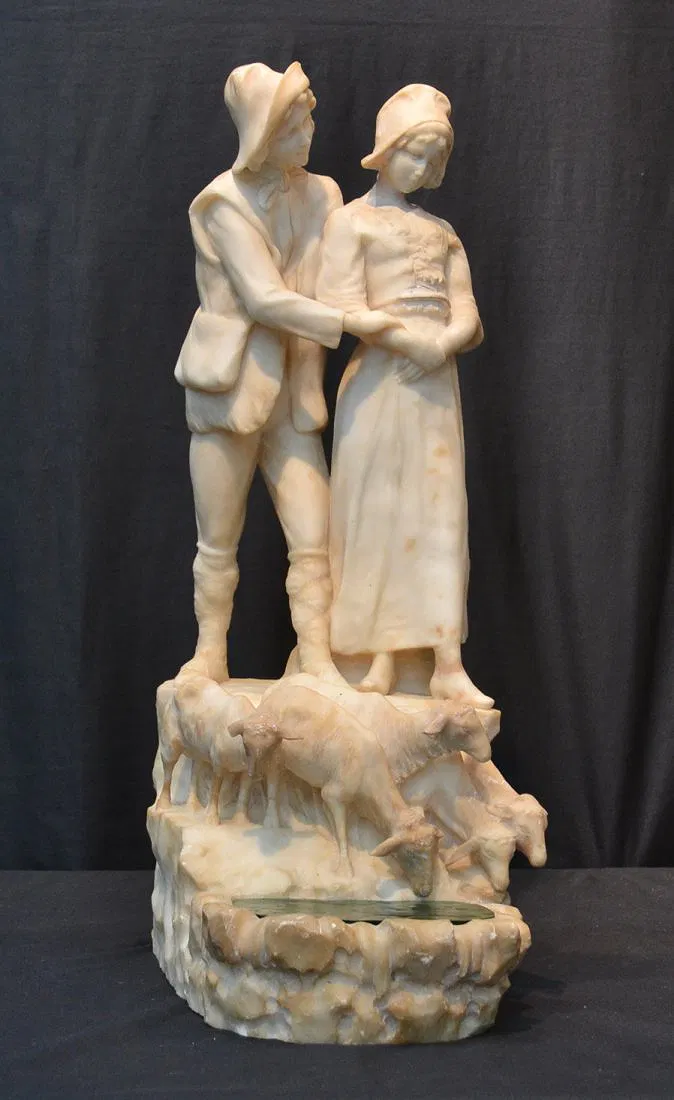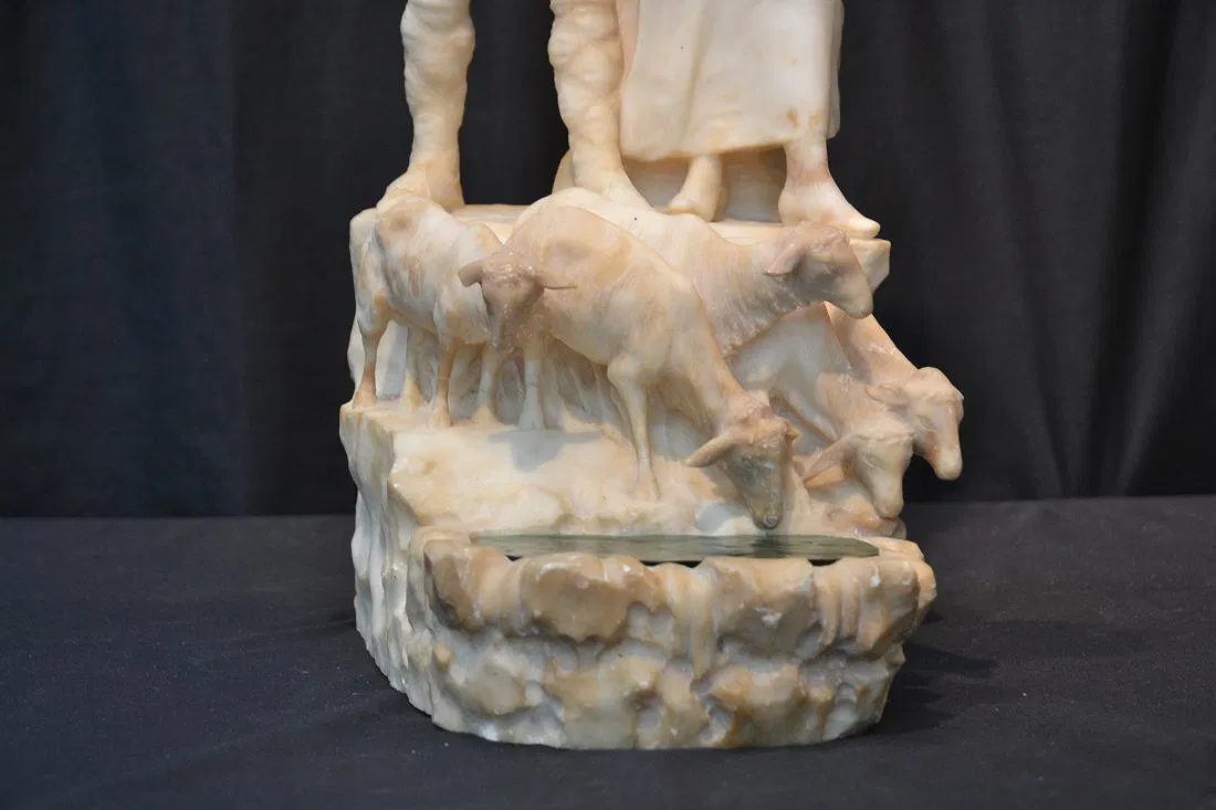 Details WOMAN LEADING SHEEP (REPAIR TO NECK & SHEEP MISSING EAR) 12″ x 9″ x 24″