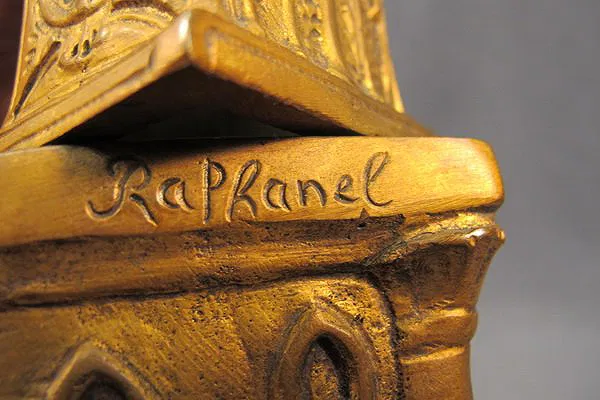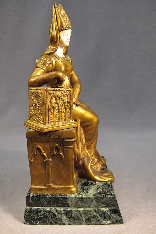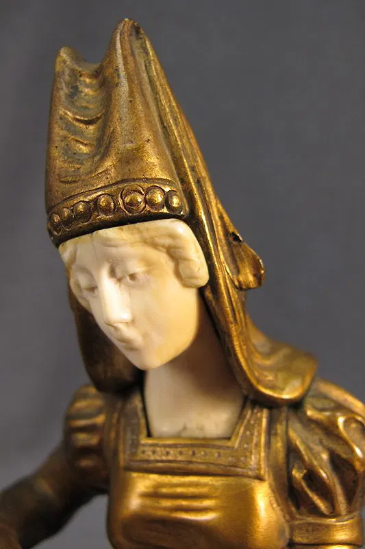 RAPHANEL19th C. bronze & ivory statue with a marble base, signed. 11 3/4” H including base.