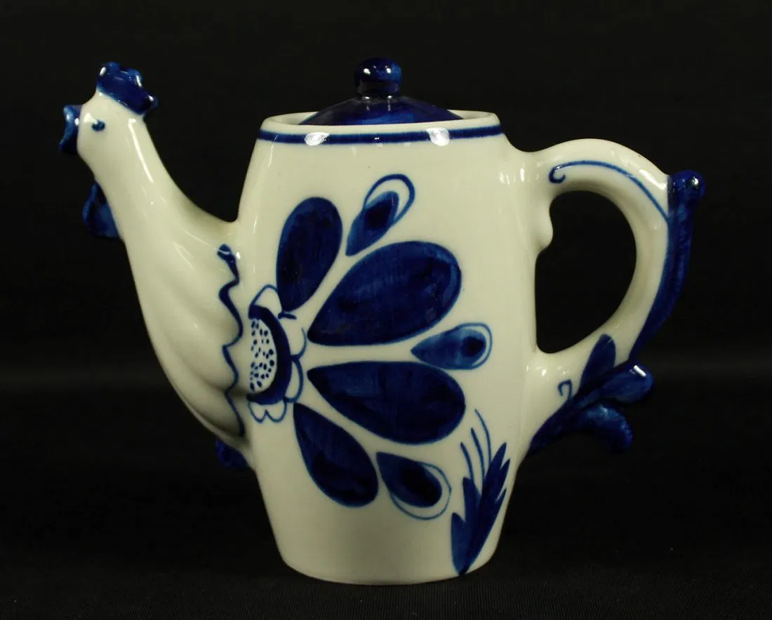 Item Details Description RUSSIAN PORCELAIN CHICKEN TEAPOT. MEASURES H: 5″ W: 6 1/4″