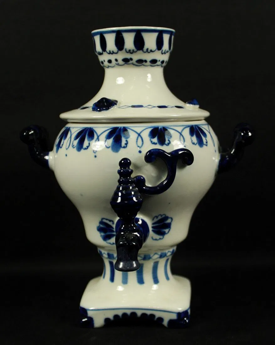Item Details Description RUSSIAN PORCELAIN SAMOVAR. MEASURES H: 8 1/2″ W: 7″