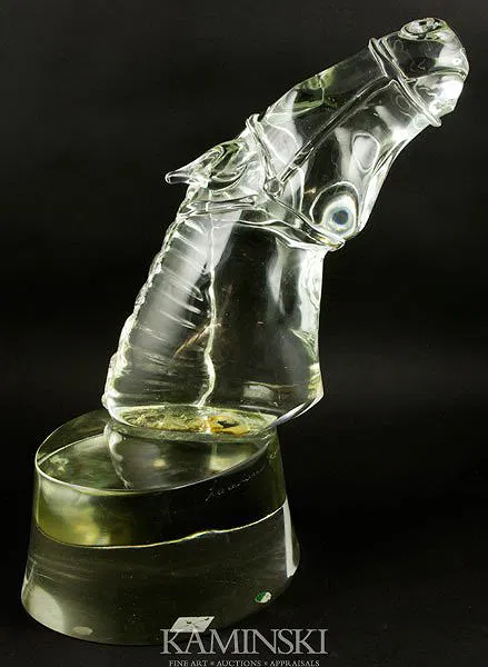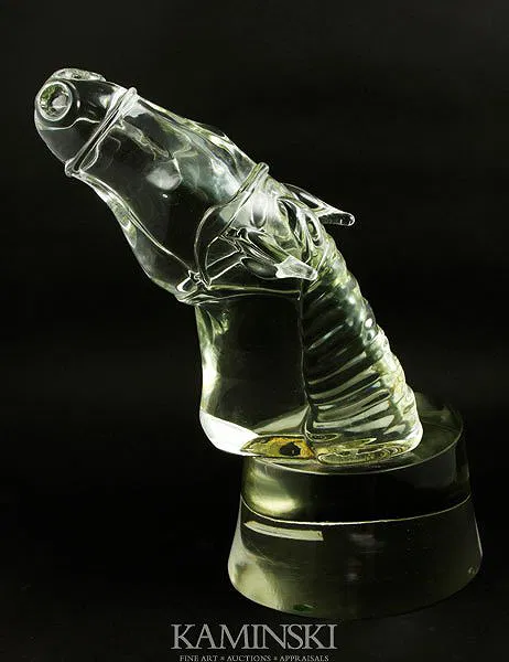 Sculpture of Horse, leaded crystal, signed indistinctively possible Laurentowo Rosiu, 17″h x 12″w.