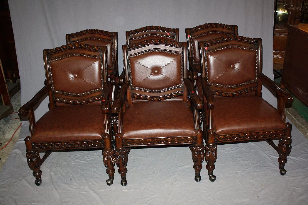 Set of 6 leather & mahogany armchairs