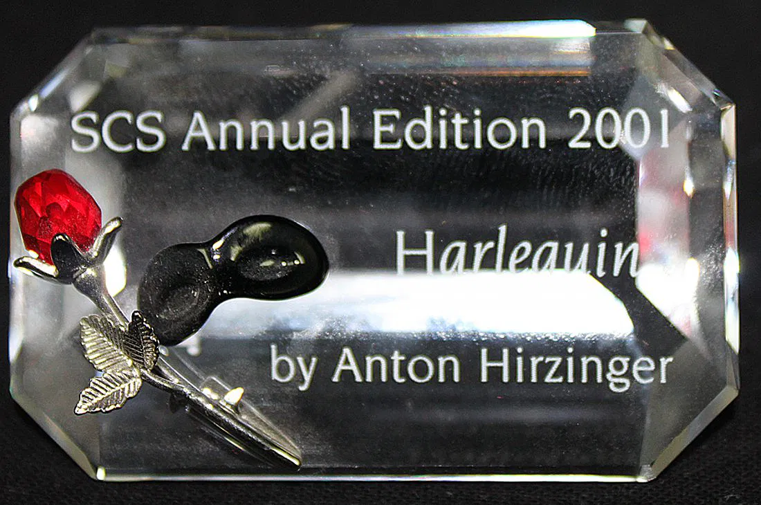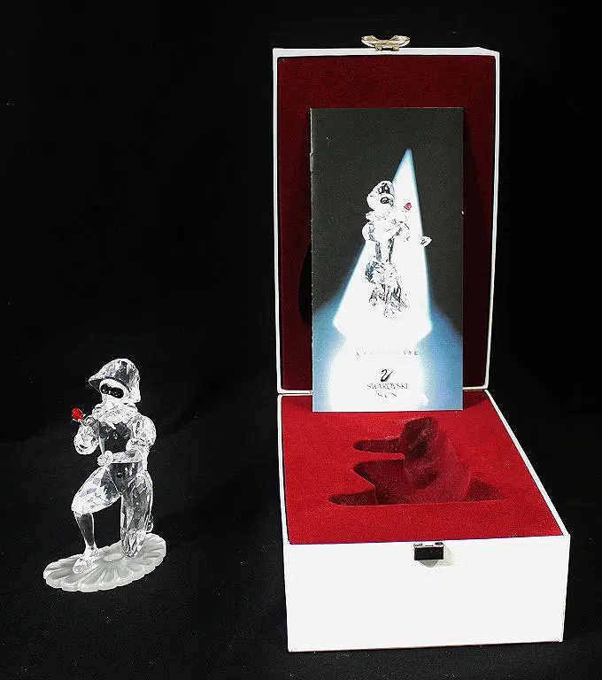 “Masquerade 2004 Harlequin” crystal figurine by Helmut Swarovski. Marked. Comes with original box, certificate, and name plaque. Measurements: 3″ x 4″ x 5″ Artist: Helmut Swarovski Style: Modern