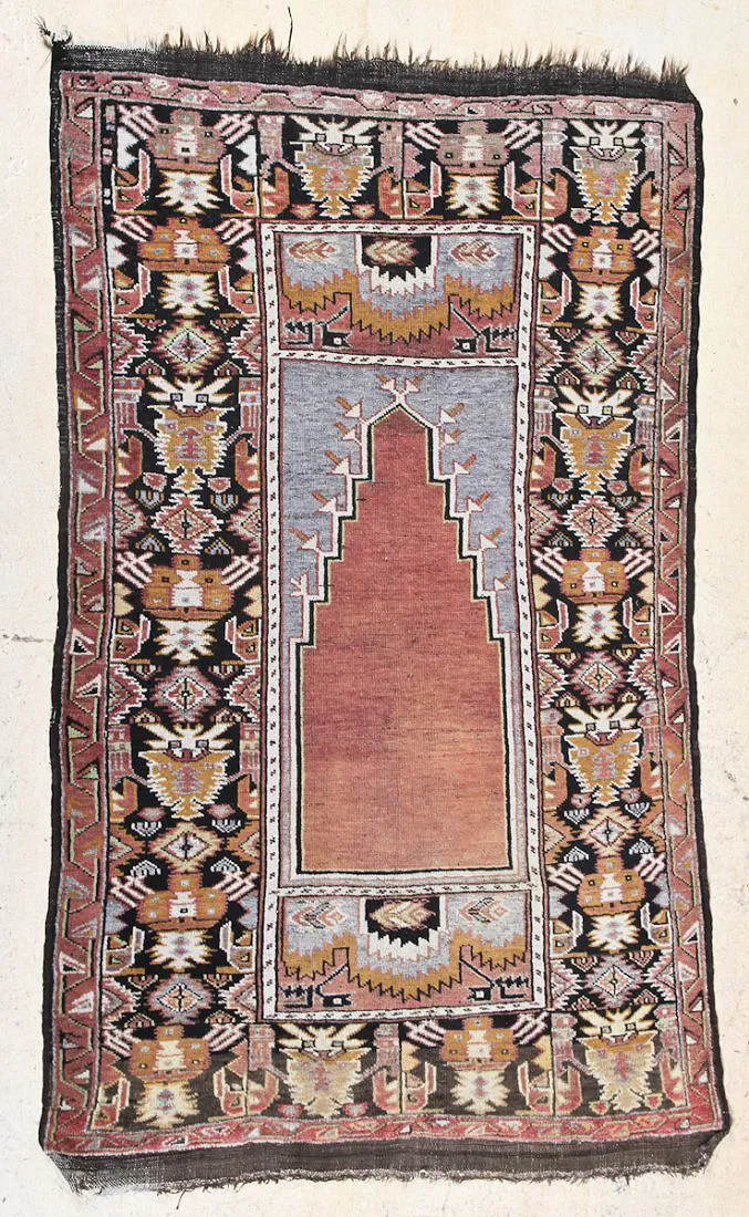 Turkish Prayer Rug, central Anatolia, early 20th c. Size: 7′ 4″ x 3′ 8″.
