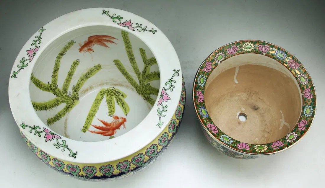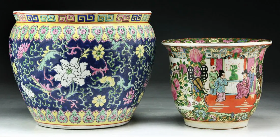 Two (2) Chinese Porcelain Planters; Size: D: 19″ (biggest)