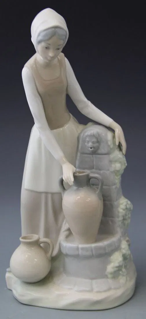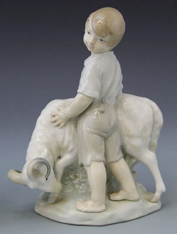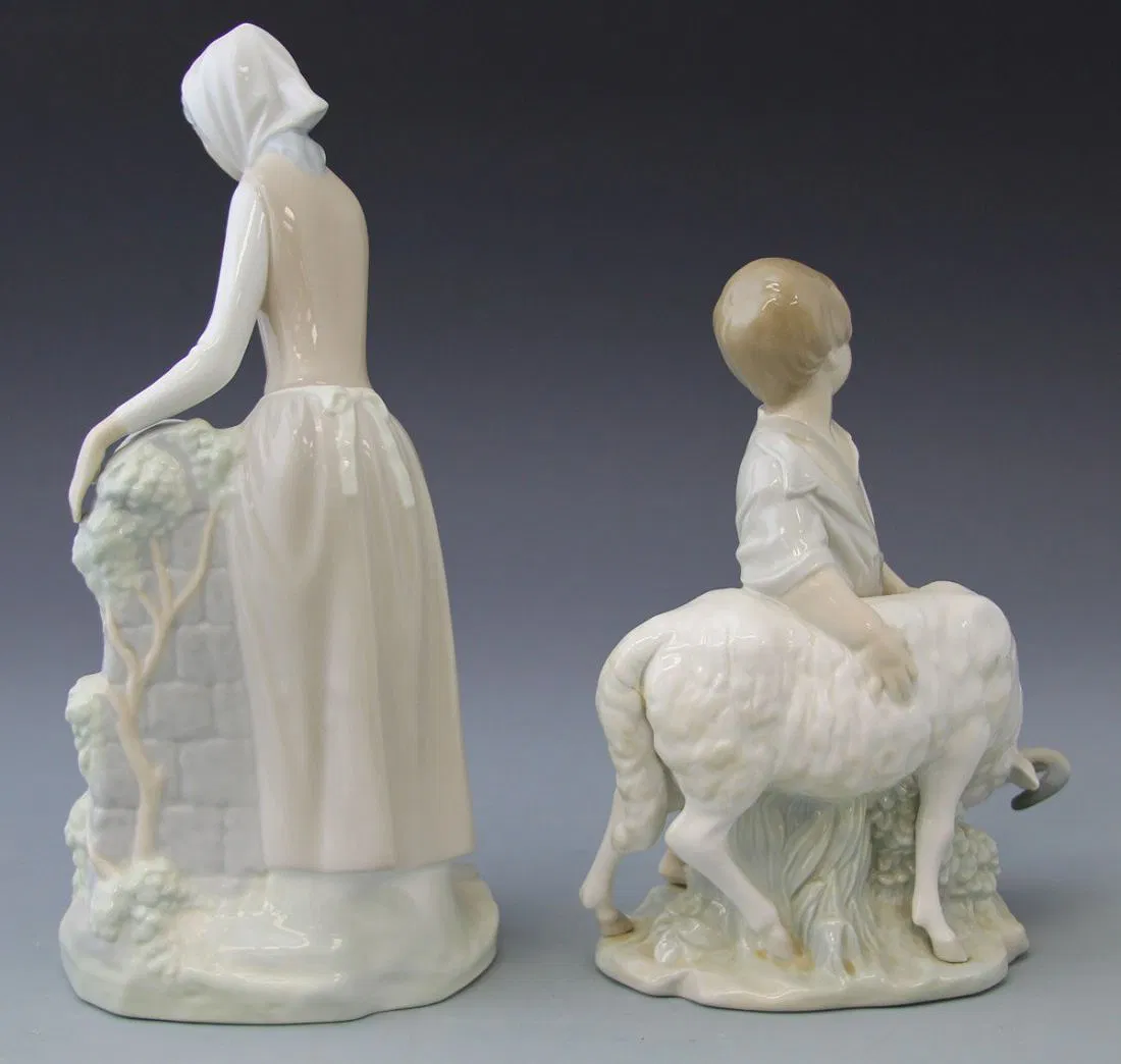 TWO PORCELAIN NAO LLADRO FIGURES BOY AND GIRL Two porcelain Nao by Lladro figures. 02000121 Boy w/ Goat and 02000136 Girl in the Fountain. Size: 12 x 5″; 9 x 6″
