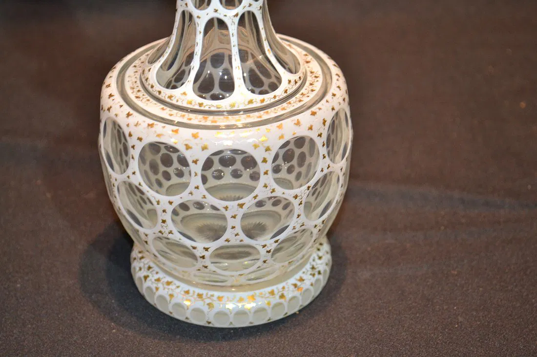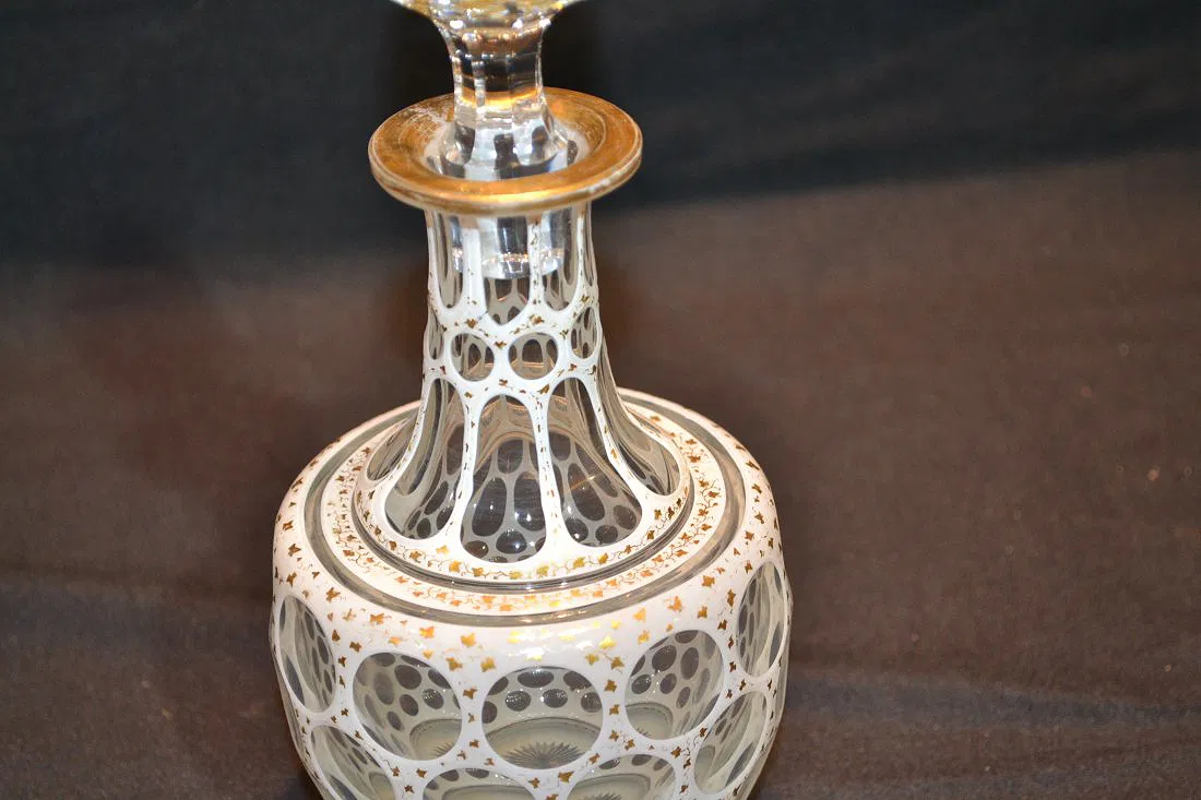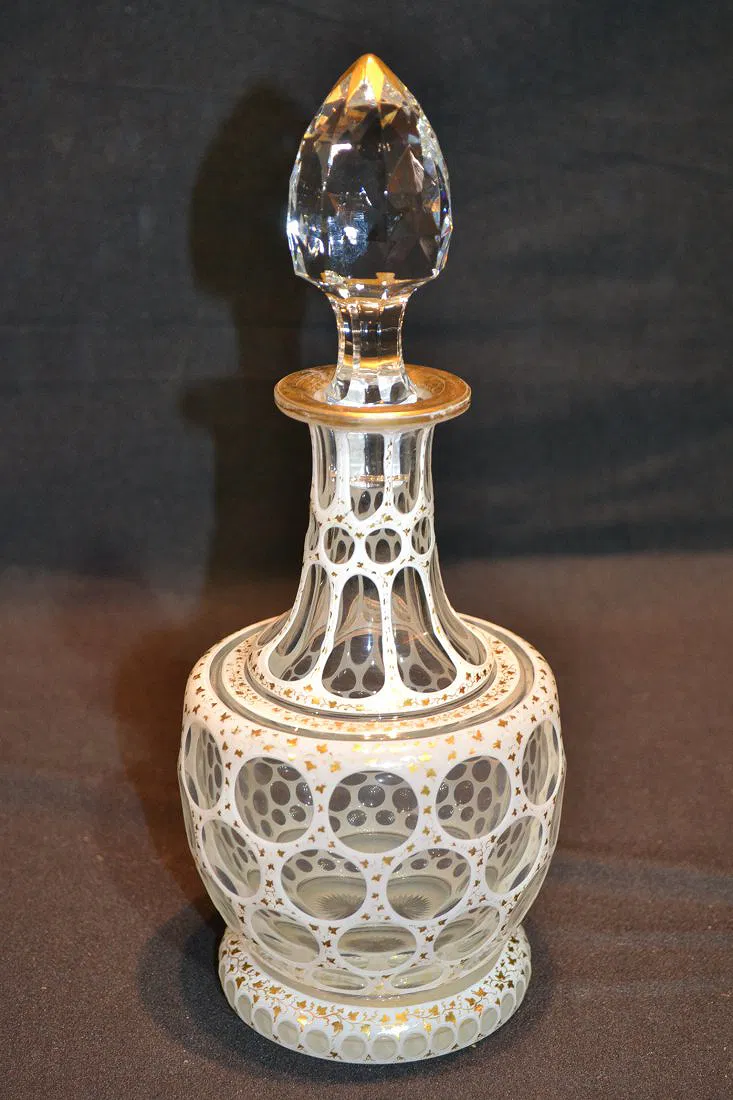 VICTORIAN CASED GLASS DECANTER – 10 1/4″ TALL