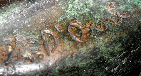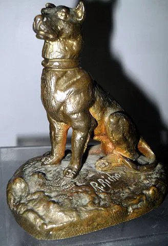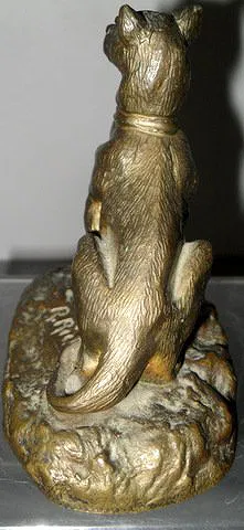 Victorian Sitting Dog Bronze Signed R. Richards Bronze of vigilant guard dog resting on naturalistic base. Signed R Richards. Measures 3 3/4″ tall x 3 1/2″ wide x 2 1/2″ base. Nice original patina.