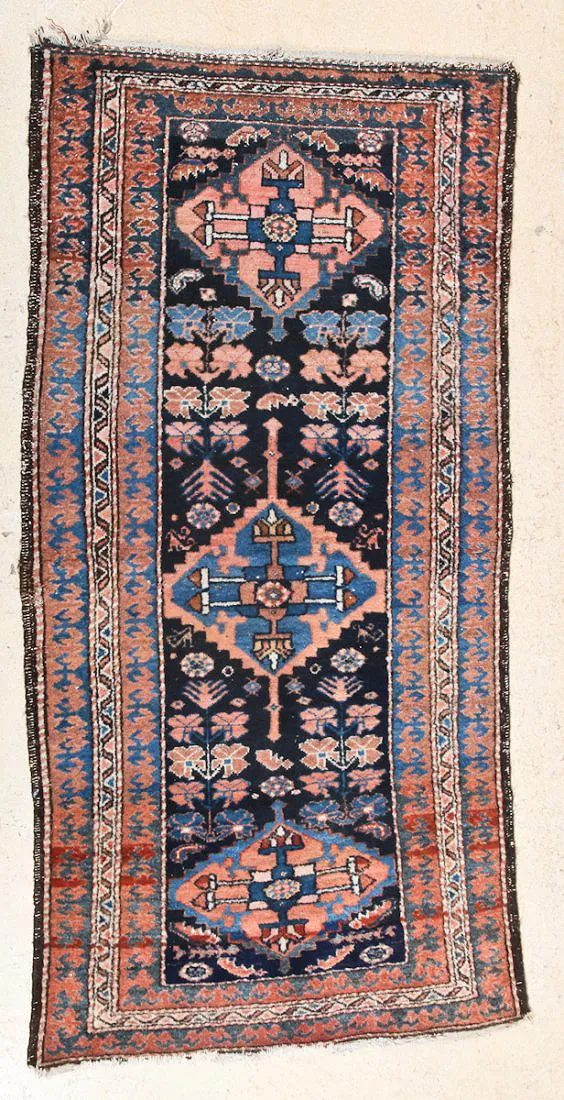 West Persian Village Rug, early 20th c, frayed ends. Size: 6′ 3″ x 3′ 1″.